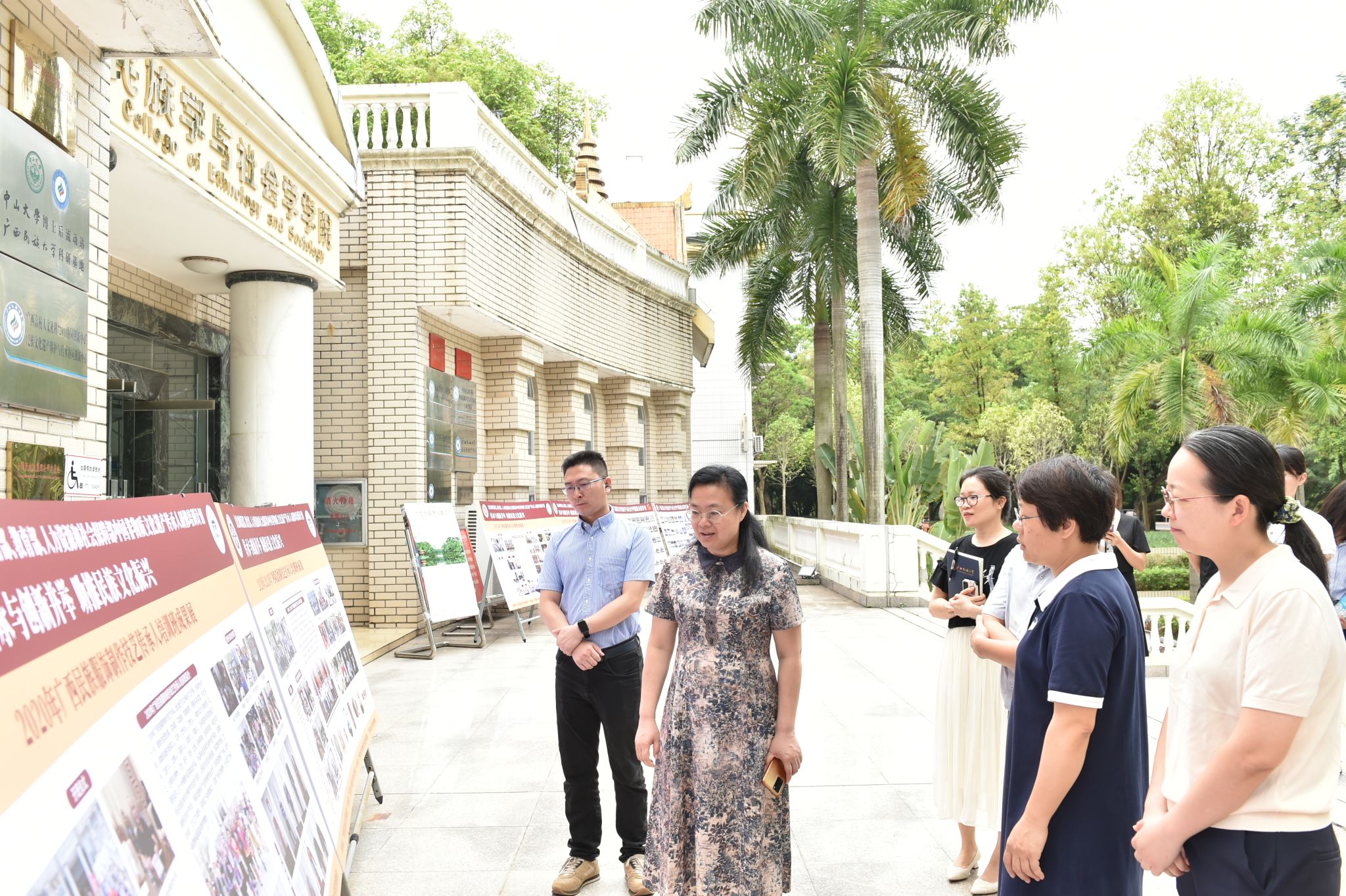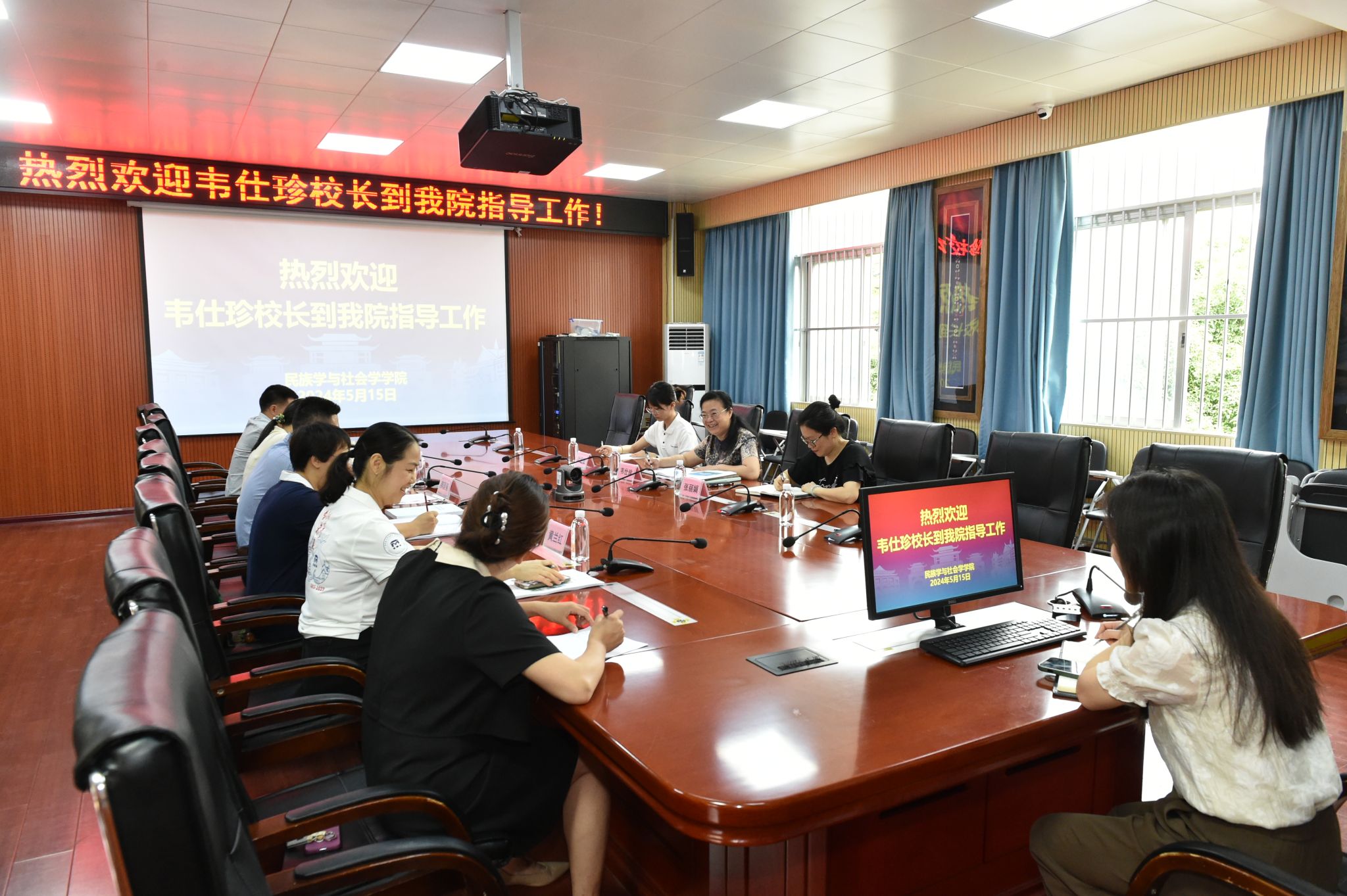 韦仕珍指出,民族学学科作为学院的坚实基础,是学校的重要名片。她鼓励学院继续加强学科建设,以增强核心竞争力;在现有博士点建设的基础上,集合资源,积极申报文物专博博士点,以促进学科的进一步发展。此外,她还强调了高层次人才引进工作的重要性,建议学院结合自身发展实际,做好人才引进和队伍建设。她表示,提升人才培养质量是学院发展的关键,学院应全面加强队伍建设,培养更多优秀的人才。同时,充分发挥民族博物馆社会教育职能,将其打造成为铸牢中华民族共同体意识的重要阵地,传播中华优秀传统文化,不仅服务于全校师生,也服务于社会大众。