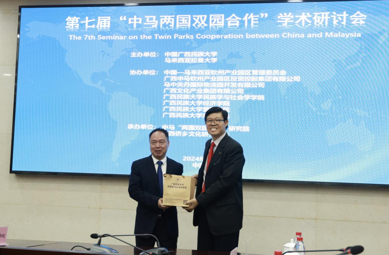 5月30日,第七届中马“两国双园”合作学术研讨会在广西钦州中马产业园区召开。研讨会由广西民族大学和马来西亚拉曼大学联合主办,五十多名来自中马两国高校的专家学者和相关企业代表参加了会议。