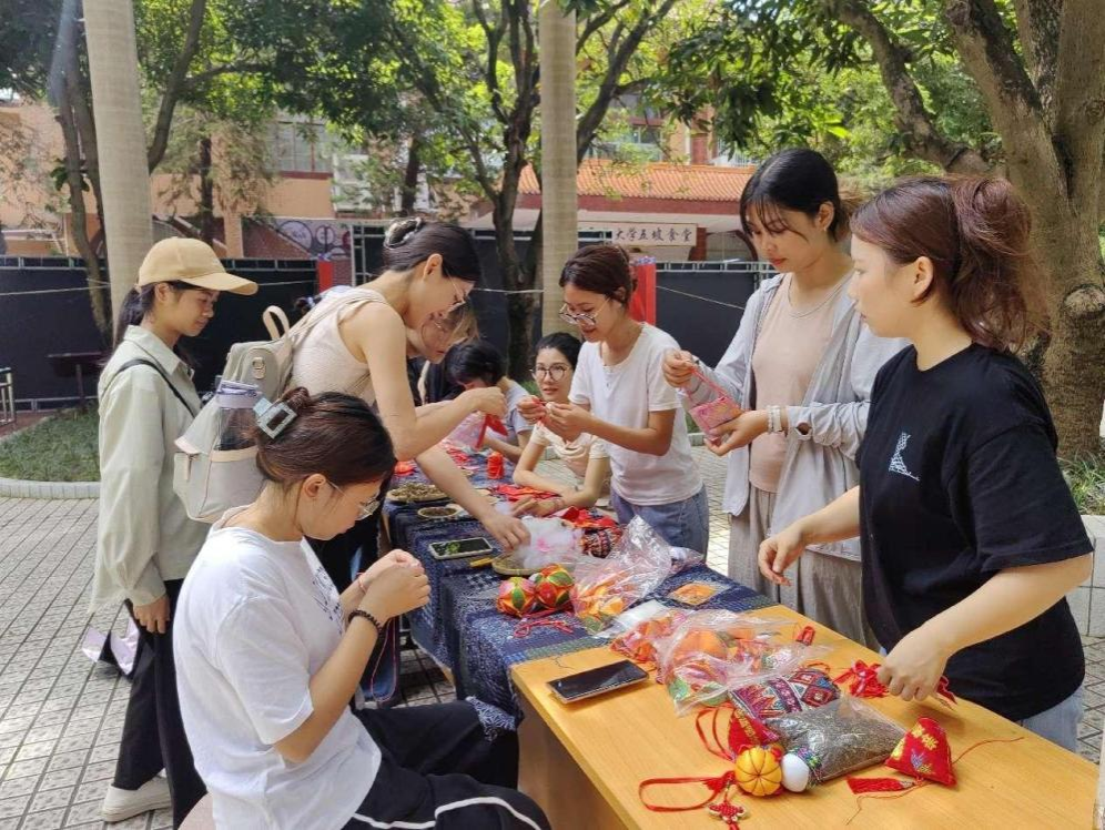 师生参与端午节户外香囊制作体验活动