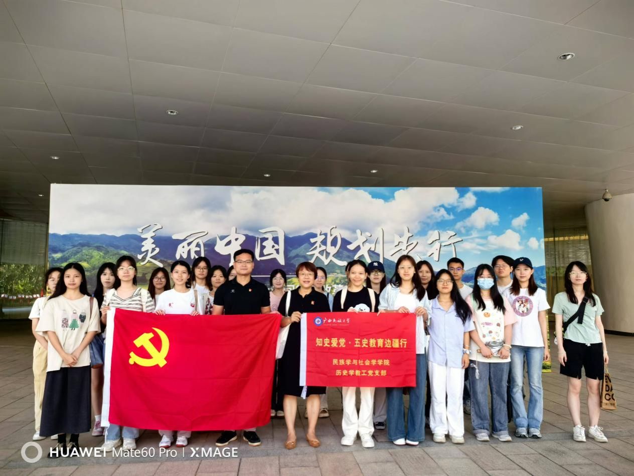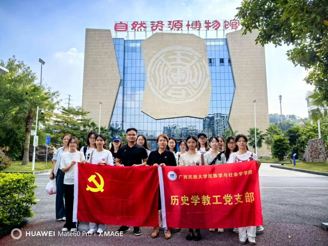 以此为新的起点,为打造“知史爱党·五史教育边疆行”教育服务品牌,2024年11月15日,历史学教工党支部书记滕兰花教授、学院党委组织员李开欢老师带领历史系本科和硕士生团队代表前往南宁城市规划展示馆和广西自然资源档案博物馆开展“八桂红色研学”专题调研活动。