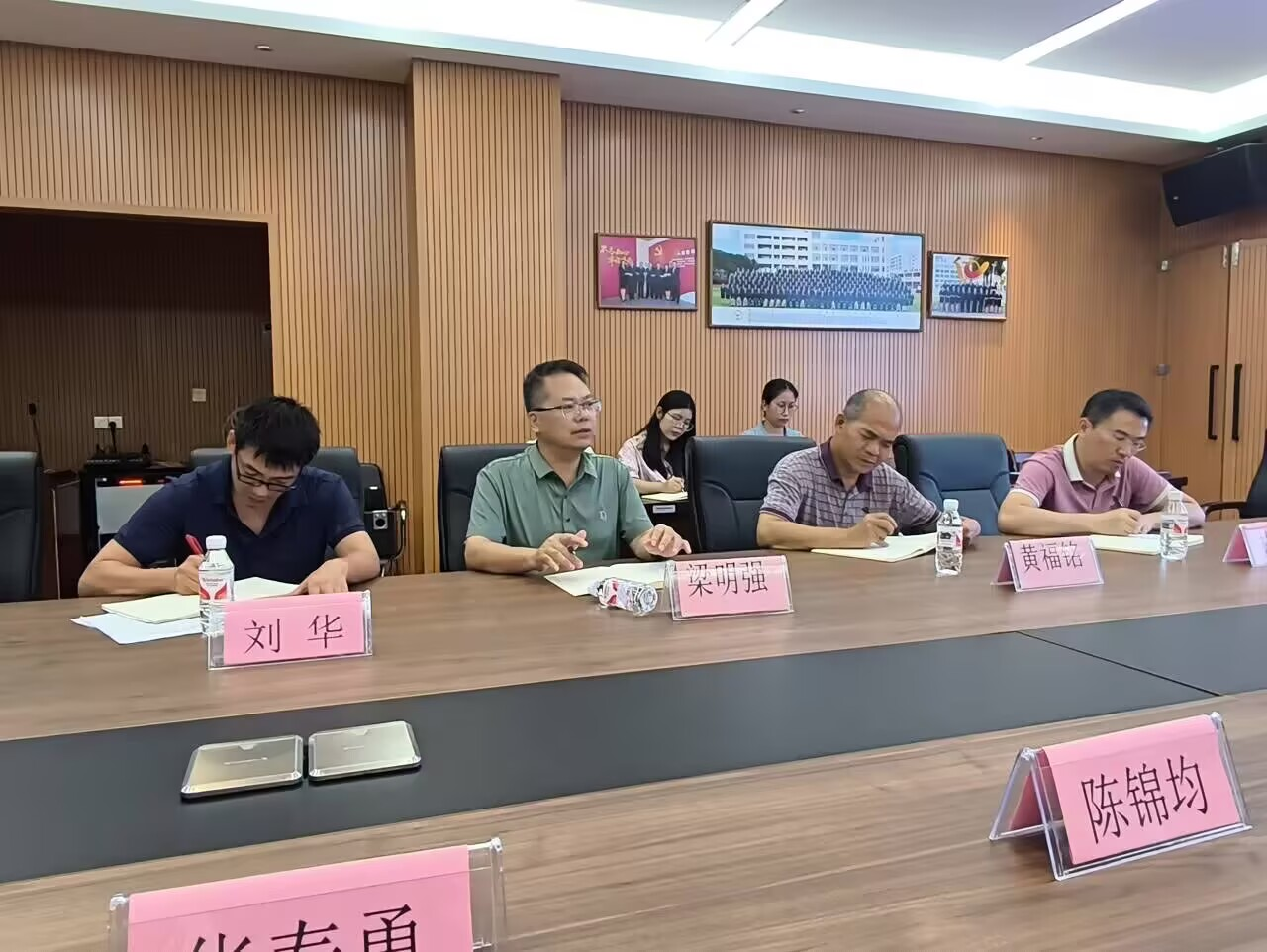 梁明强介绍了学校历史沿革和人才需求,并就未来双方合作事项进行了深入洽谈。黄福铭对学院历届毕业生的整体素质和在工作岗位上的表现给予充分肯定,并就学院实习生、见习生培养及师范专业建设提出建议。陈锦均详细介绍了学院学科建设、人才培养、专业设置等情况,他希望未来双方在人才培养、继续教育、实践基地建设、课题研究等方面加强合作,实现资源共享、优势互补、互利共赢。陆惠君指出,学院历史学专业一直有着良好的师范专业办学传统,希望通过此次访校拓岗行动,有更多的毕业生到二十中实习和工作。双方表示今后将就校校合作、人才培养、实践基地共建等展开更深入的合作。
