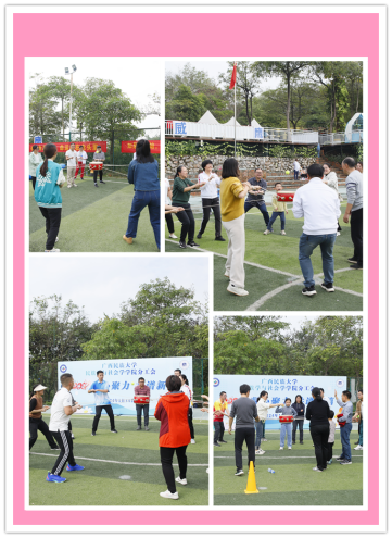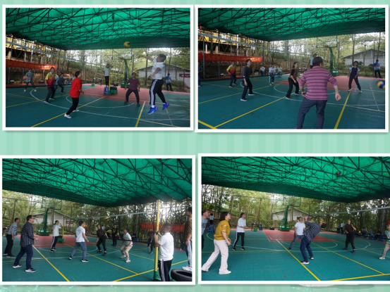 下午两点,各组又开始了新一轮的比赛,项目分别是9人背篓抛绣球、10人运球投篮接力和气排球赛,比赛中,老师们各显身手,“演技”爆棚,引得场外观众助威呐喊声和欢呼声一片,老师们完全沉浸在每一项活动当中,释放出压力,体会着工作之余少有的集体快乐感和集体成就感。下午的比赛在“友谊第一,比赛第二”的欢快氛围中圆满结束,最终第一组和第四组各积8分领先于第二和第三组的各7分。