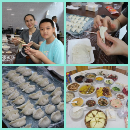 老师们在包饺子、就餐