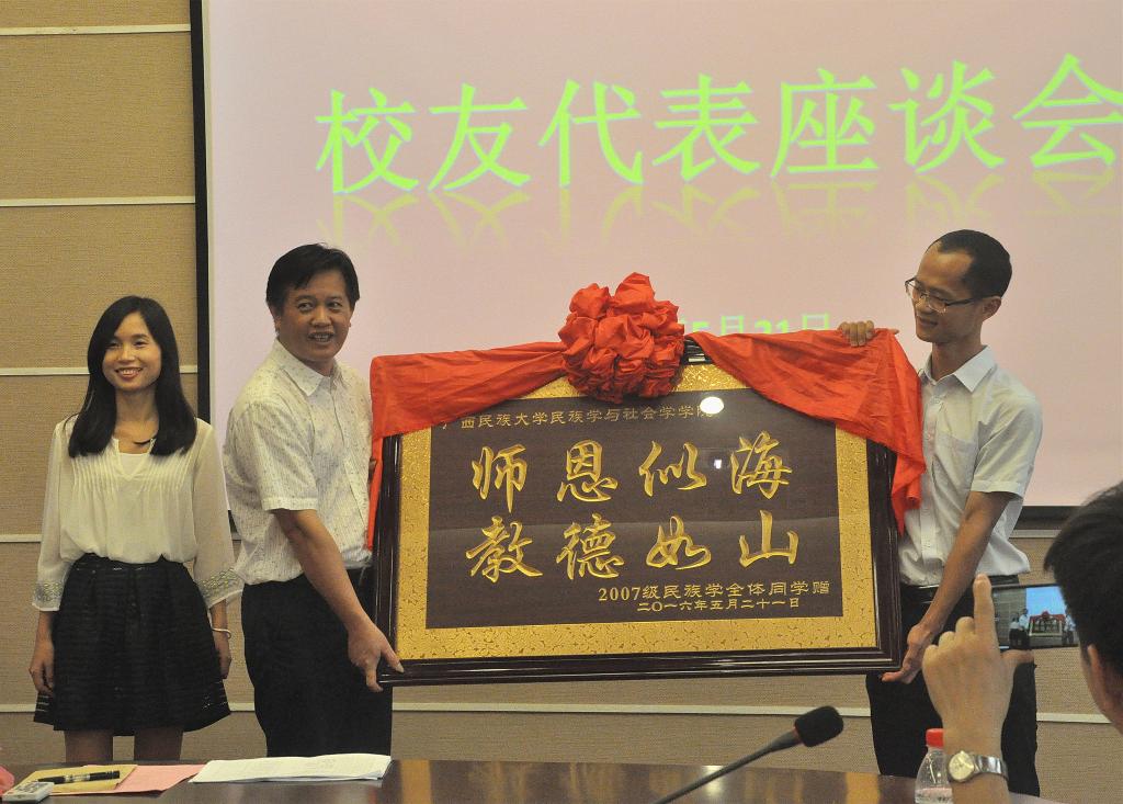 座谈会上,2007级民族学本科班校友还向母校赠送了牌匾。