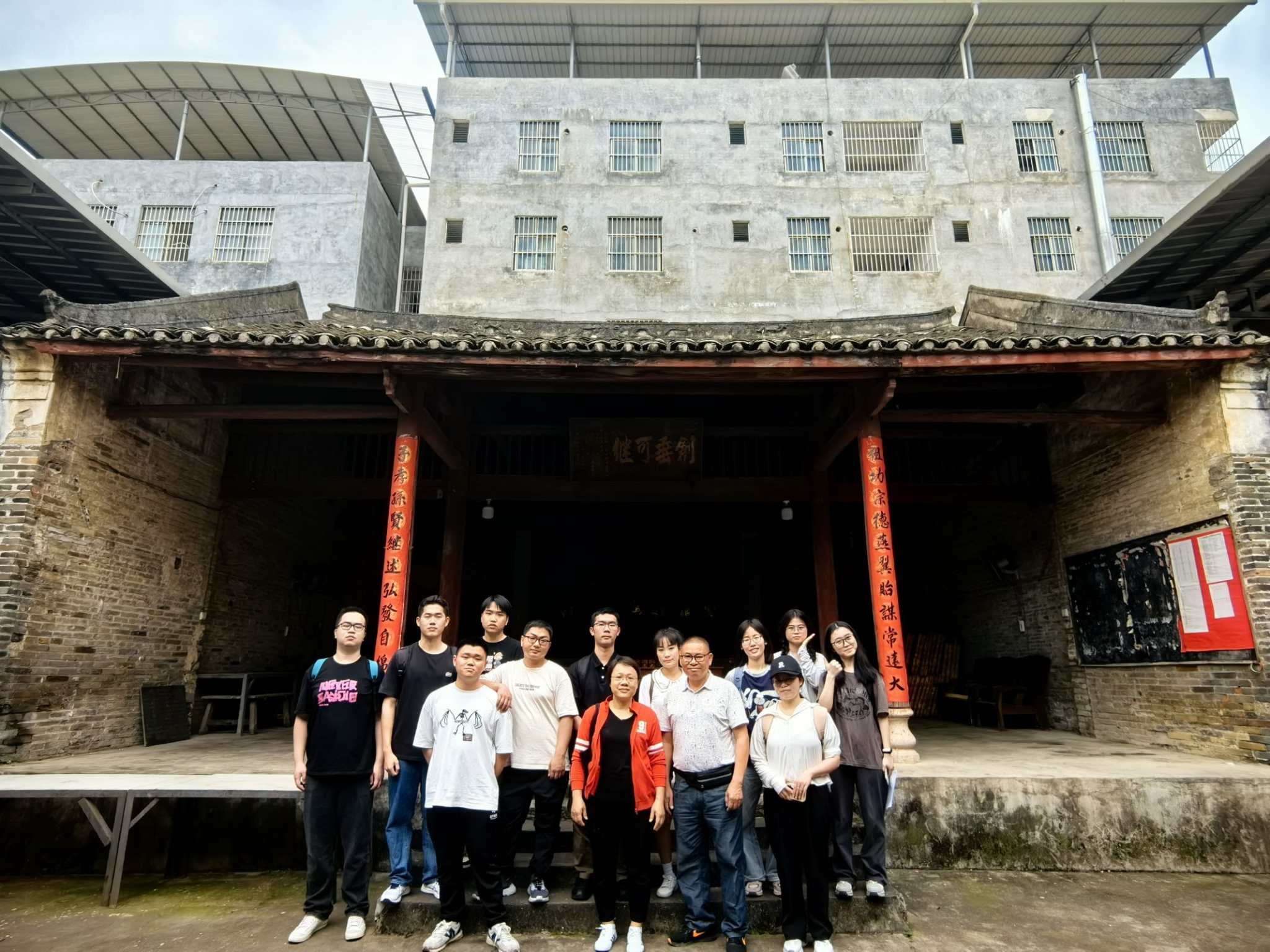 陈东村属于南宁市西乡塘区上尧街道办辖区,作为一个典型的城中村,村里除了有三座宗祠,还有建于清代的花婆庙,是研究宗祠文化与民间信仰重要田野点。师生们实地考察花婆庙,在陈裔宗祠前开展现场文献研读。随后到陈氏宗祠考察,并与宗祠负责人就城镇化浪潮下城中村的历史文化景观存续及历史文化街区建设等问题进行详细交流。