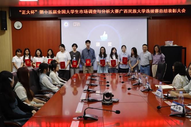 2025年5月11日,广西民族大学第四届大学生市场调查大赛暨“正大杯”第十五届全国大学生市场调查与分析大赛选拔赛总结表彰大会在基地楼103报告厅隆重举行。m88,m88.com,明升体育88党委副书记陆惠君、评委代表李春华教授、社会学系专业负责人艾晶教授及参赛教师和学生代表出席。